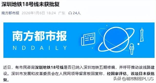 今年1月份,南方都市报爆料,有市民咨询深圳地铁18号线规划情况,官方给出的回复是,这条连接宝安、光明、龙华、龙岗、盐田等区的重要线路,经国家评估未获批复。