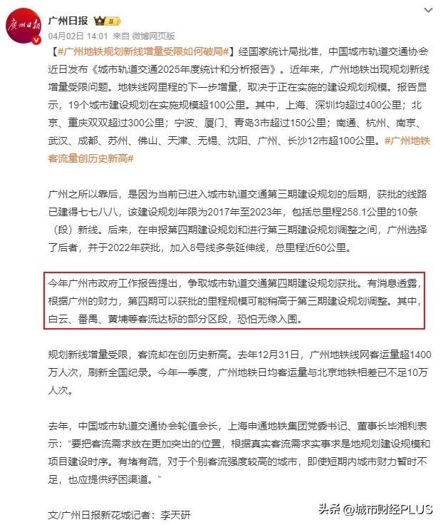 广州日报的意思是,四期可以获批的里程稍高于三期被砍的里程,预估可能在六七十公里。